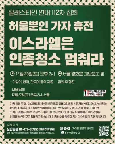 - 주최 : 팔레스타인인들과 연대하는 사람들